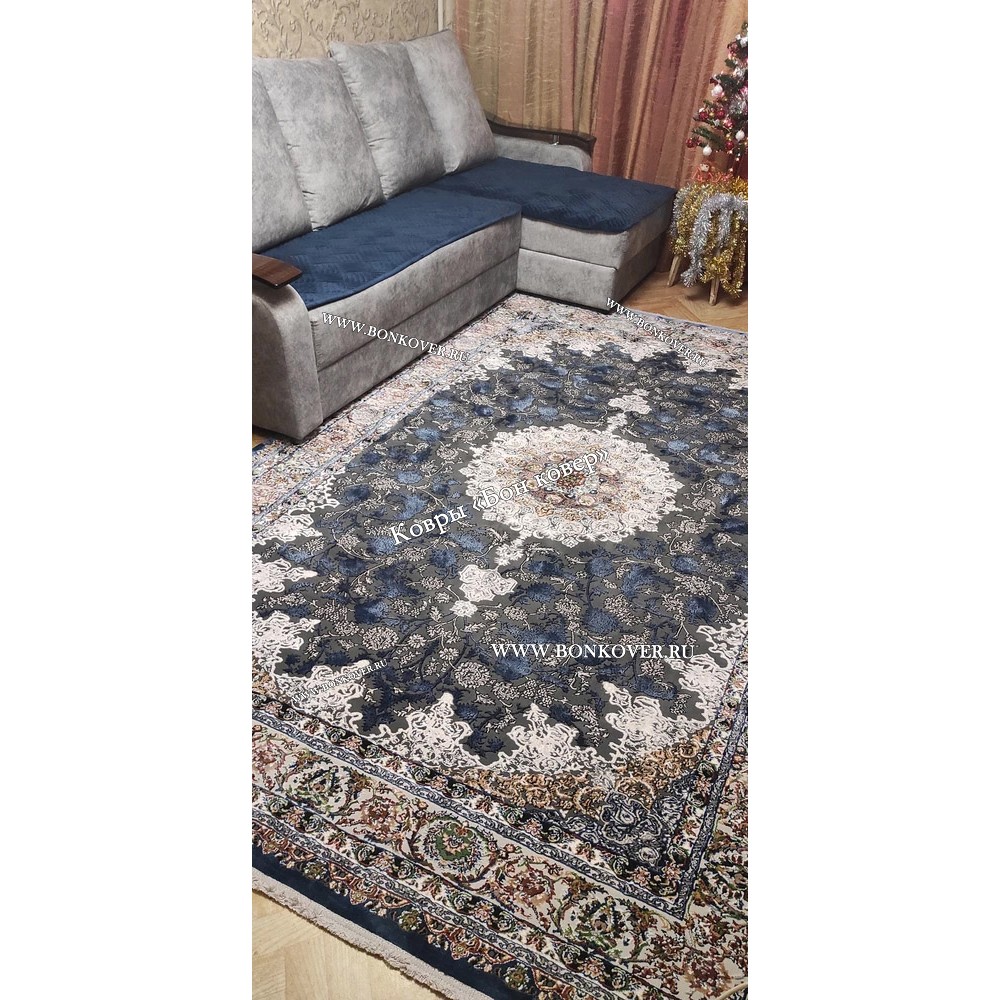 Шикарный Турецкий Ковер Для Медальон Дизайн 30573 Синий наполняет интерьер квартиры теплом и уютом, гармонично сочетает в себе изящество и красоту. Он соткан из износостойких материалов, комфортный и долговечный.